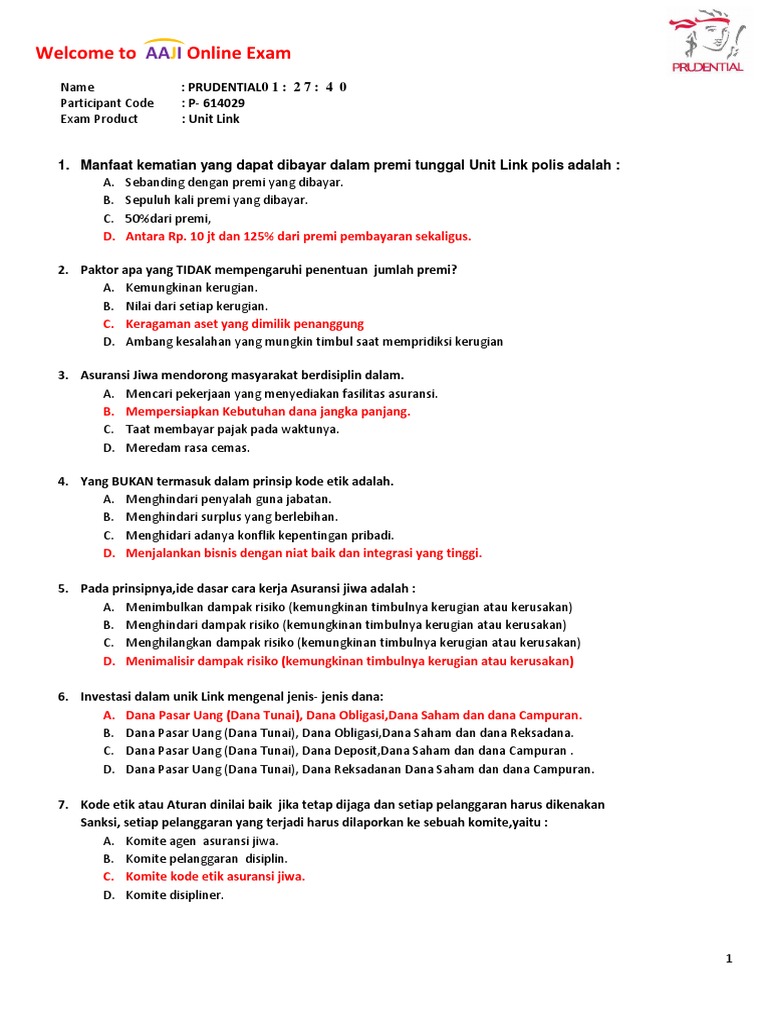 Soal Ujian Prudential Soal Ujian Aaji Asosiasi Asuransi Jiwa Indonesia