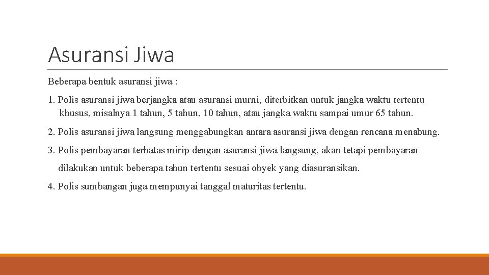 Polis Asuransi Jiwa adalah perjanjian antara perusahaan asuransi dengan pihak yang menggunakan asurnasi 2. Asuransi jiwa tradisional berbasis pinjaman 3. Buku Soal Jawaban 101.