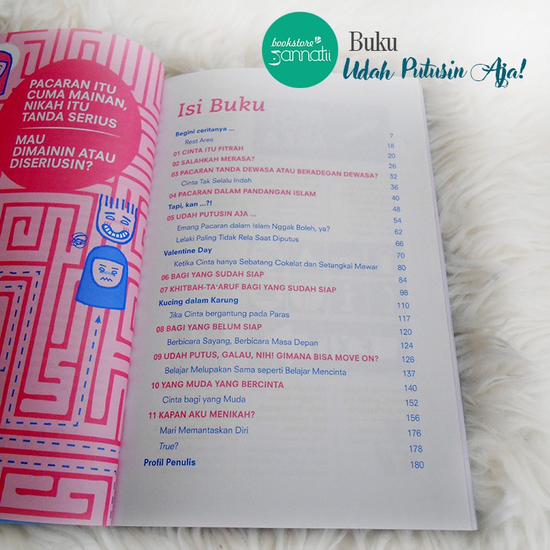 Namun juga pada isi buku. Semoga cepet dinikahin sama pacarnya atau putusin pacarnya kalau memang belum siap nikah Tak bosan kami mengingatkan hubungan cinta dg lawan jenis batas halal-haramnya hanya pernikahan. Buku Udah Putusin Aja.