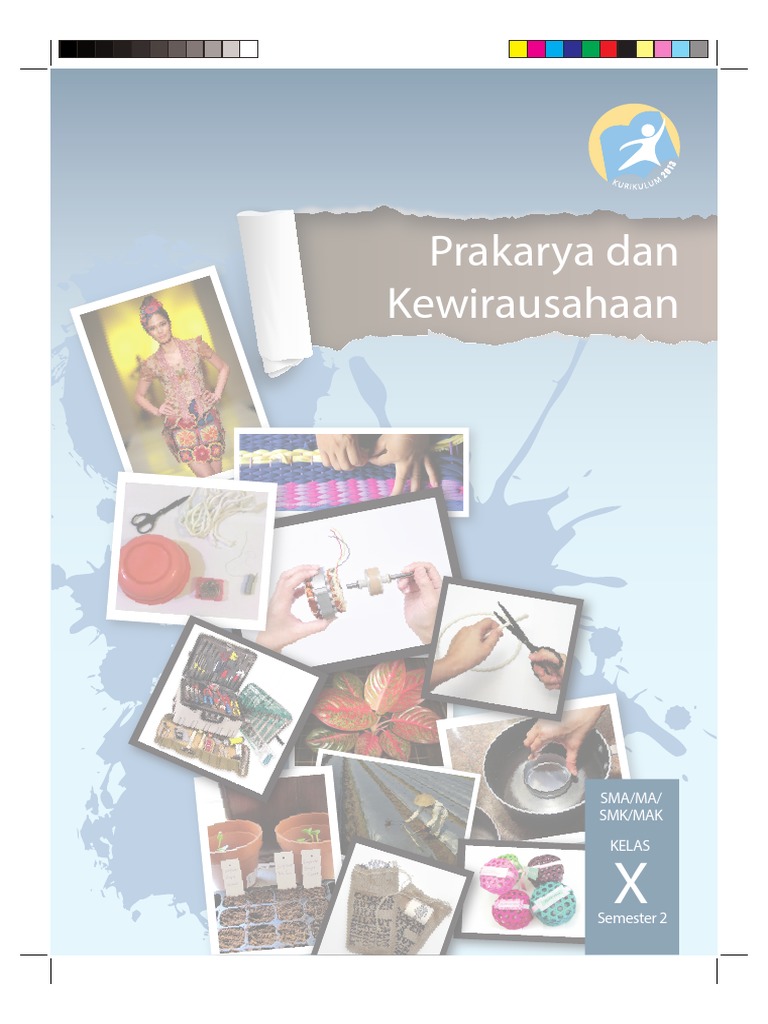 Pada Kelas X peserta didik akan menjalankan proses pembelajaran yang lebih ditekankan kepada simulasi berwirausaha dengan memanfaatkan keterampilan melihat peluang pasar berpikir kreatif merancang memproduksi mengemas dan memasarkan secara sederhana. Buku tersebut hingga saat ini masih menjadi buku pelajaran yang digunakan di semua sekolah yang telah menerapkan kurikulum 2013. Cara Merancang Kerajinan dengan Bahan Tekstil.