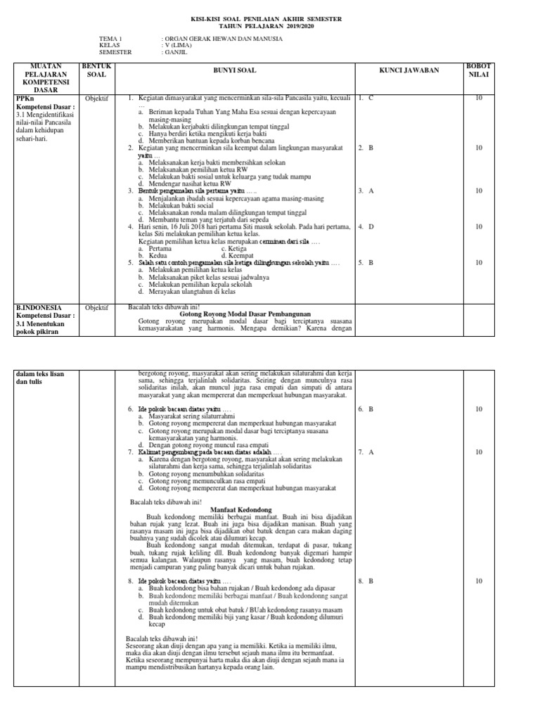 Kisi Kisi Soal Pas Ganjil Kelas 5 Tema 1 2 3 4 5 Matematika 1