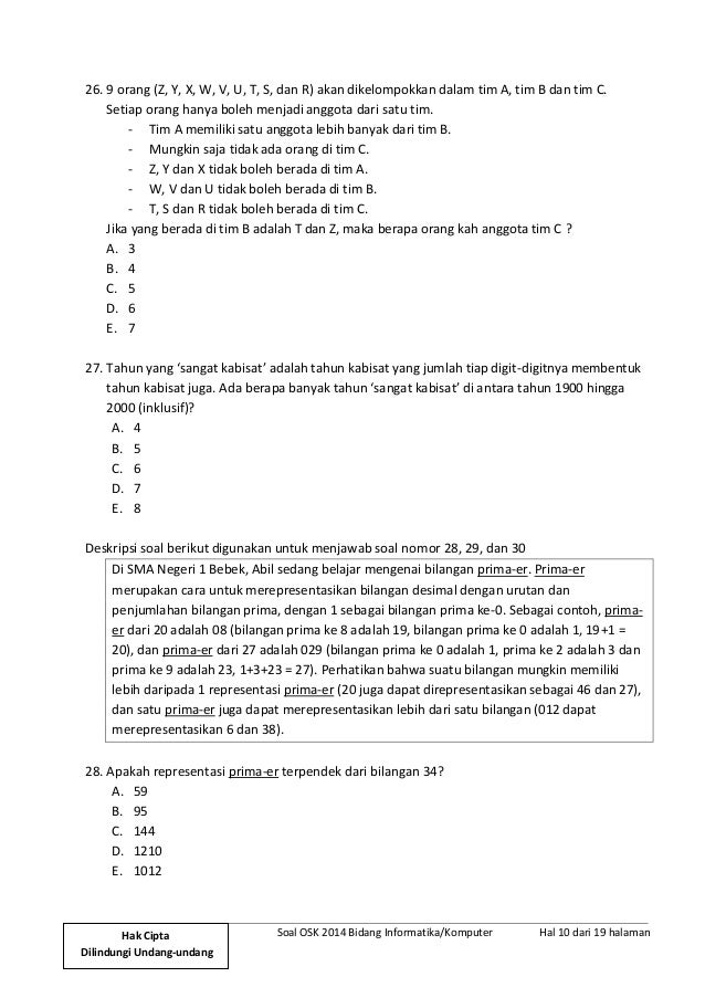 BIDANG MATEMATIKA Cover Soal dan Cover Kunci Jawaban Soal OSK 2013 Bidang Matematika Kunci Jawaban OSK 2013 Bidang Matematika Pembahasan OSK 2013 Bidang Matematika BIDANG. Salah satu bidang yang dilombakan di KSN merupakan bidang informatikakomputer. Deskripsi untuk soal nomor 28 - 30 Ada 5 anak bernama Ari Dewangga Tracy Ivan dan Korabum.