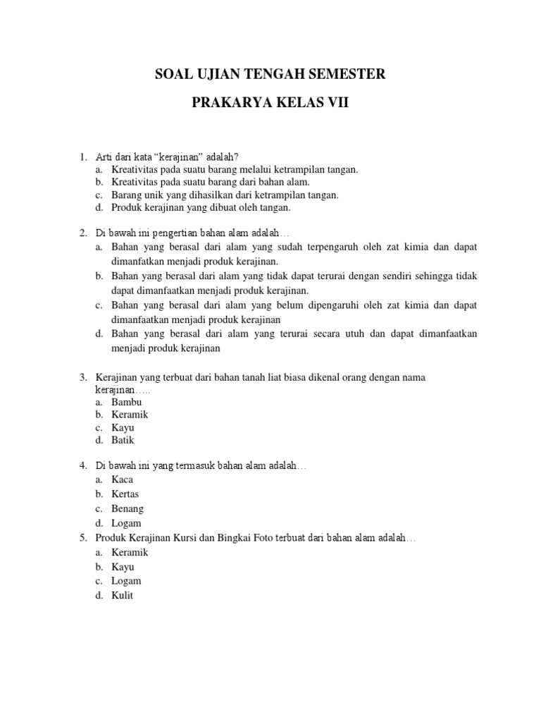 Doc Latihan Soal Prakarya Muh Akbar Al Hasani Academia Edu