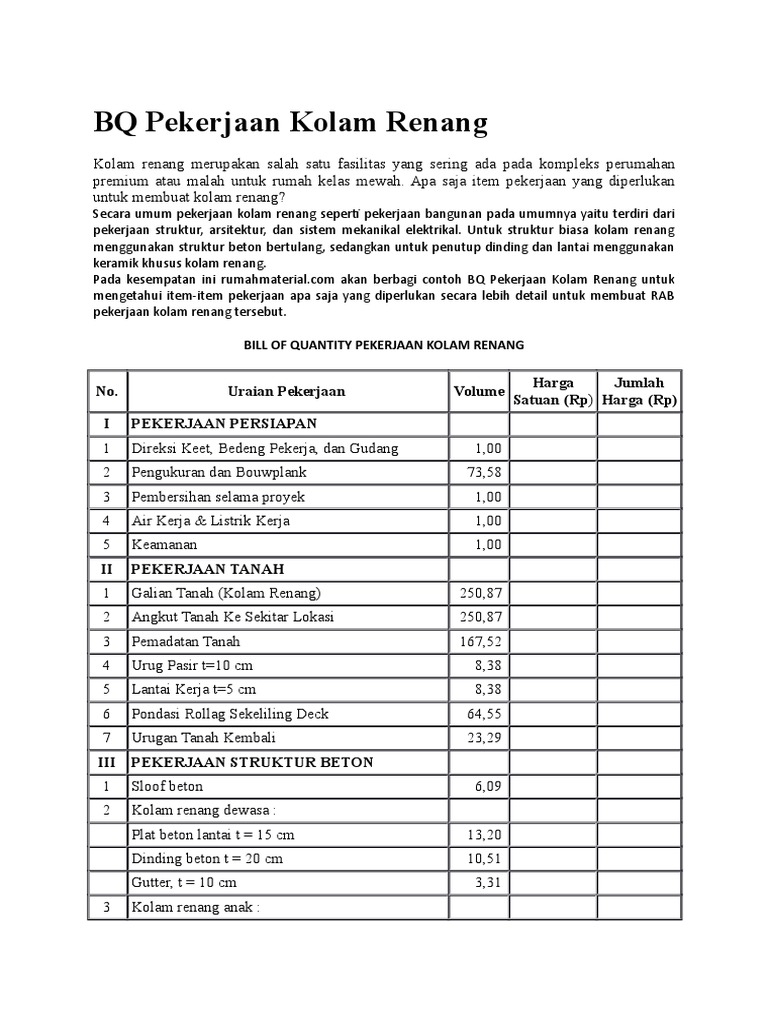 Contoh rab kolam renang. RAB Theme finishing arsitektur. Adapaun Info Contoh Rab Kolam Renang Xls Bisa anda lihat di bagian bawah tulisan ini. Rab mushola ukuran 4x.