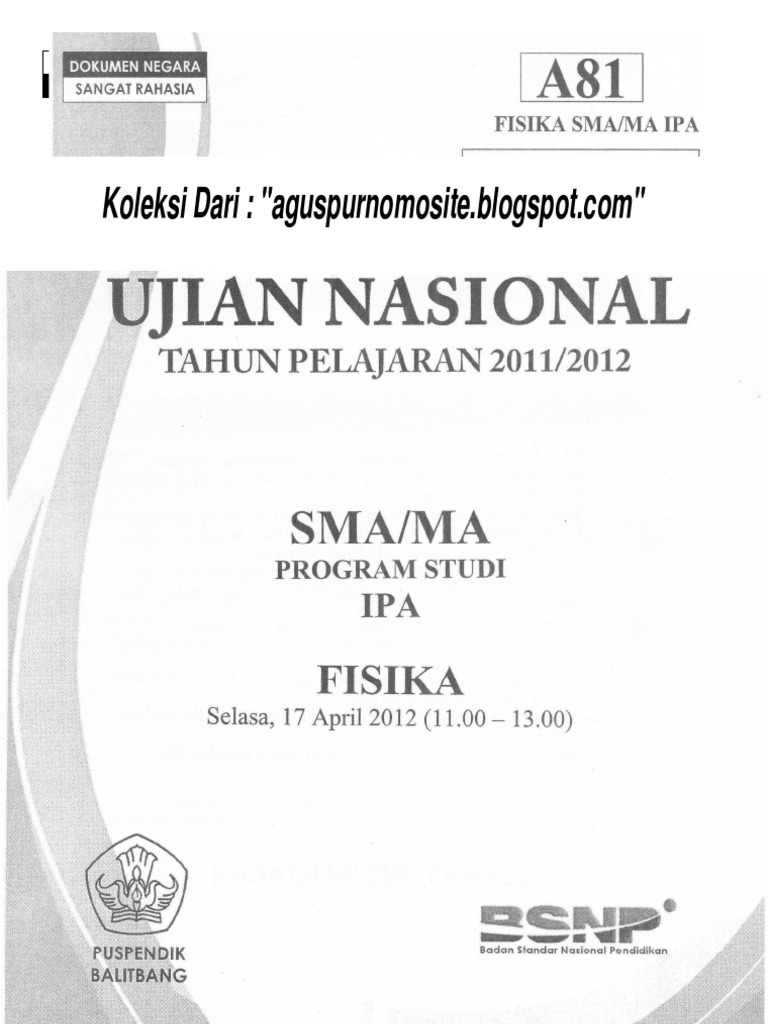 Soal un fisika 2012. Soal UN 20112012 C61 No11. Soal UN 20112012 A81 No33. Kumpulan Arsip Soal UN Fisika SMA Tahun 2007 sd 2012 Per Indikator Kisi-Kisi UN 2013.